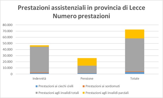 I dati sulle prestazioni INPS agli invalidi civili in Provincia di Lecce (aggiornati a gennaio 2022) rilevano che esistono due tipi di trattamenti assistenziali: